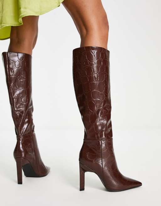 ASOS DESIGN Cancun knee high boots in brown croc Very well made.