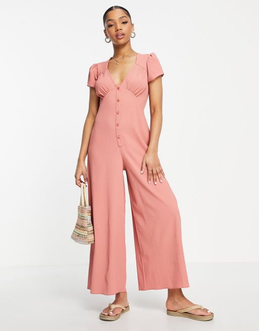 ASOS DESIGN bubble crepe cap sleeve tea button front jumpsuit in Very well made.