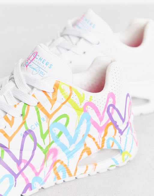 Skechers Uno sneakers with neon graffiti heart print in white ASOS Very well made.