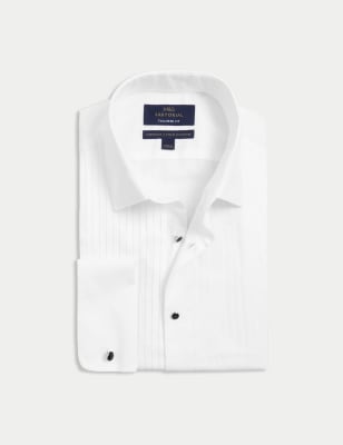 White Marcella Shirt Cotton Evening Dress Shirts Formal Standard Collar Studs UK Very well made.