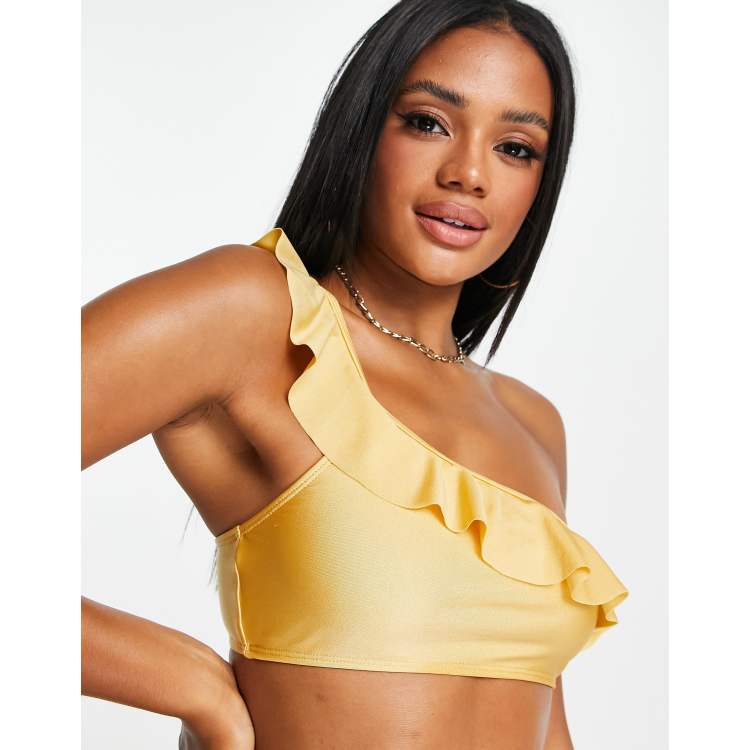 NA KD frilly one shoulder bikini top in gold ASOS Very well made.