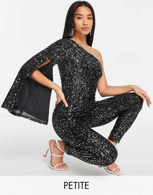 Jaded Rose Petite exclusive one shoulder sequin jumpsuit in black Very well made.