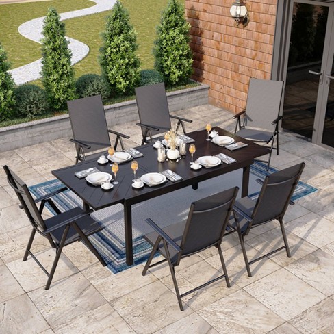 7pc Patio Dining Set With Rectangular Expandable Table Reclining Very well made.