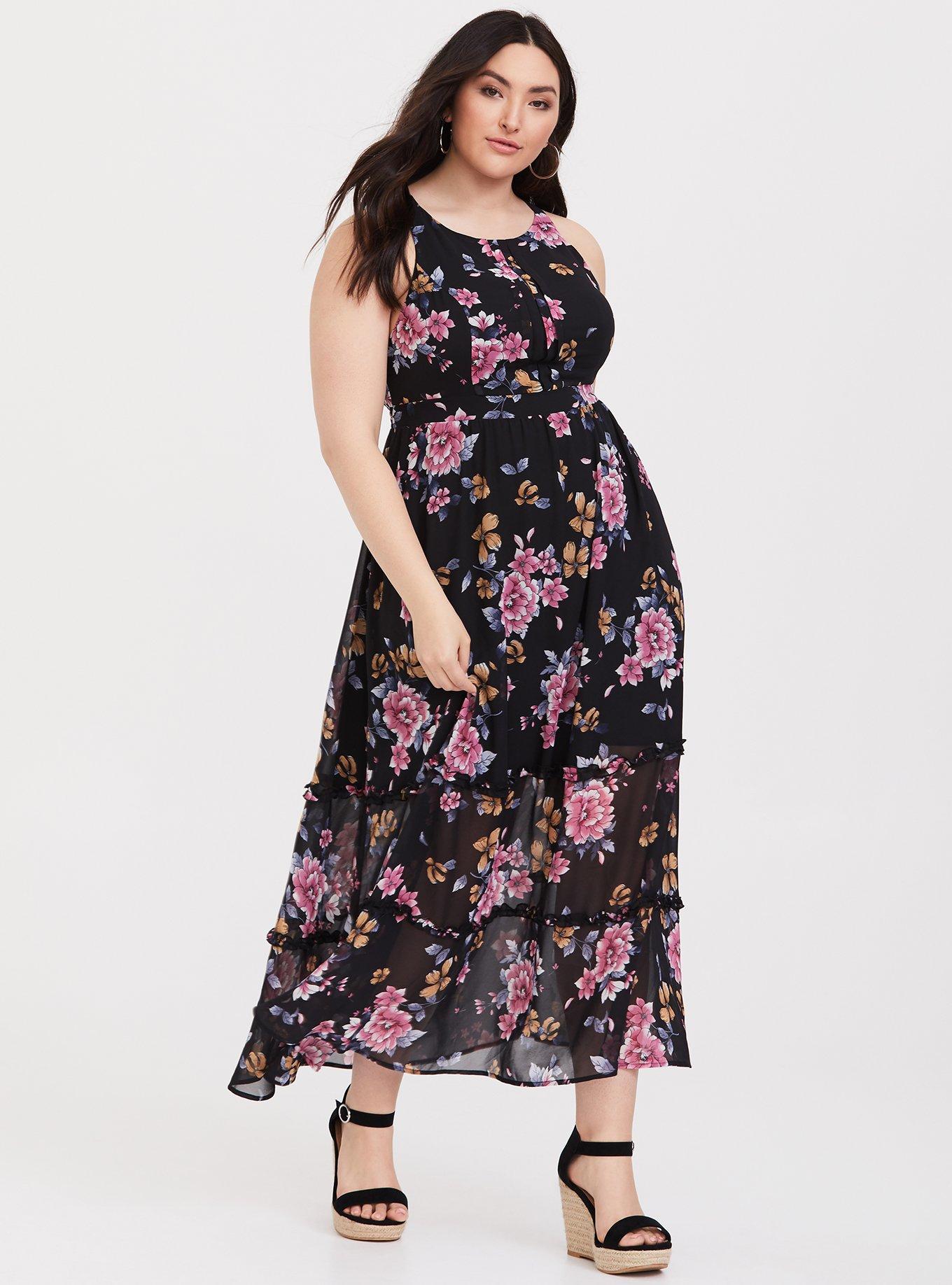 Plus Size Black Floral Chiffon Pleated Maxi Dress Torrid Very well made.