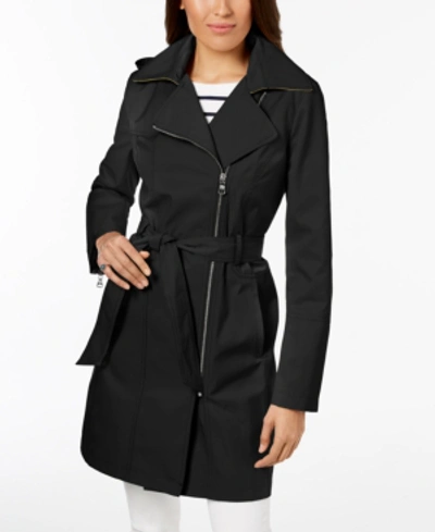 Vince Camuto Petite Hooded Asymmetrical Trench Coat In Black Very well made.