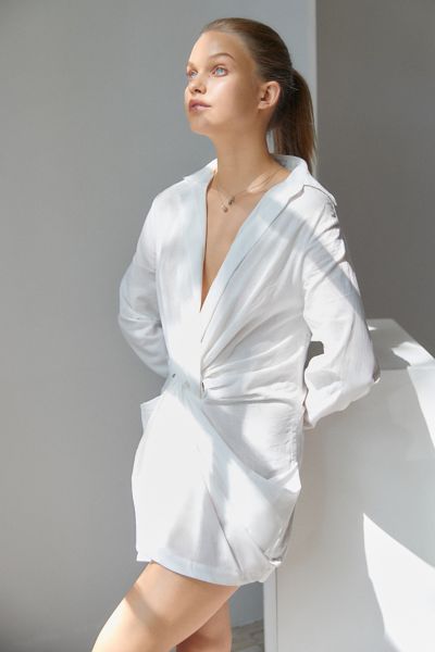 Lioness Hey You Plunging Twist Front Shirt Dress Urban Outfitters Very well made.