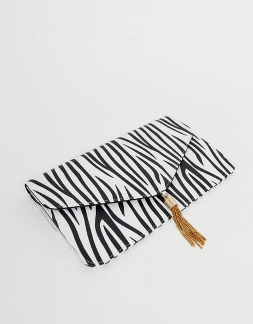 ASOS DESIGN tassel clutch bag in zebra print Very well made.