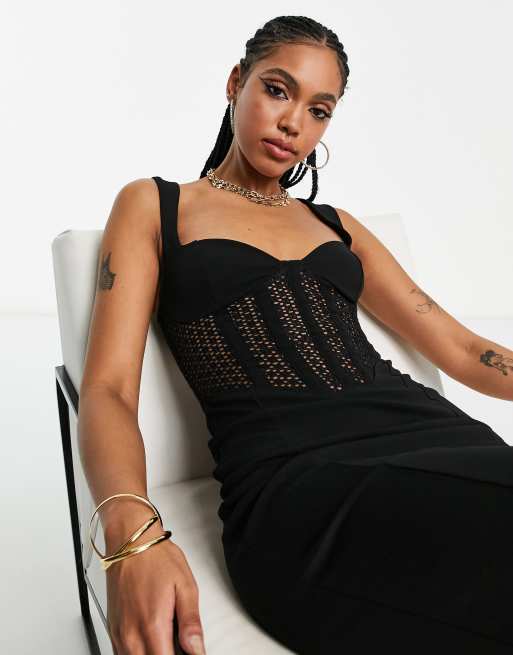ASOS DESIGN lace insert corset midi dress in black Very well made.